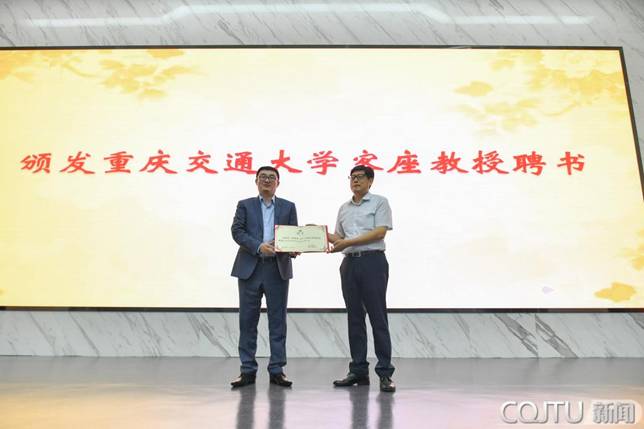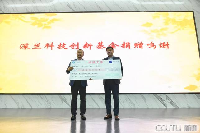 Vice PresidentZhou Jianting accepted the donation on behalf of Chongqing Jiaotong Universityand presented the Donation Certificate to Wang Xinlei, Vice President ofDeepBlue AI