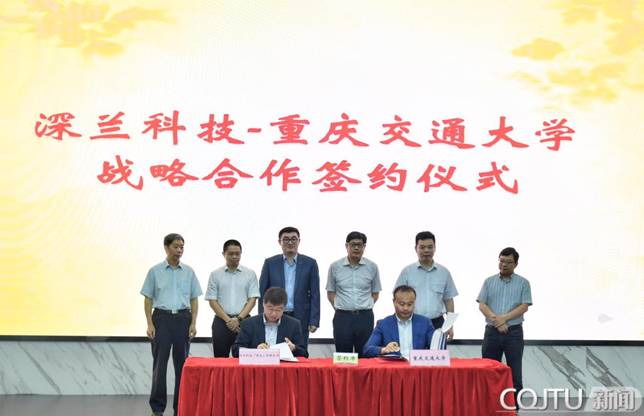 Zhou Jianting and WangXinlei,DeepBlue AIvice president,signed the strategiccooperation agreement on behalf of the university and the enterpriserespectively, and Liu Yonghua (Deputy Head of People's Government ofNan'an District), Hou Zongquan (Deputy Director of Chongqing EconomicDevelopment Zone Management Committee), Chen Haibo (Founder OF DeepBlue AI andFirst President of DeepBlue Academy of Sciences), Yan Fenghua (Secretary forScience and Technology, People's Government of Nan'an District), Tang Boming(President of Chongqing Jiaotong University) and Wang Pingyi (Vice President ofChongqing Jiaotong University) witnessed the signing ceremony.