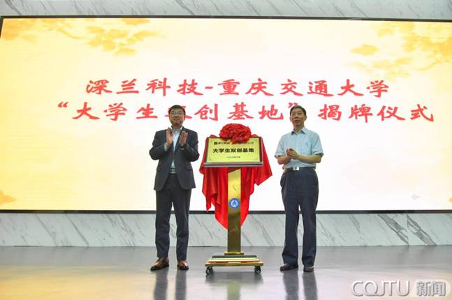 Wang Pingyi,Vice President of Chongqing Jiaotong University, and Wang Xinlei, VicePresident of DeepBlue AI, unveiled the sign-board of "MassEntrepreneurship and Innovation Base for College Students"