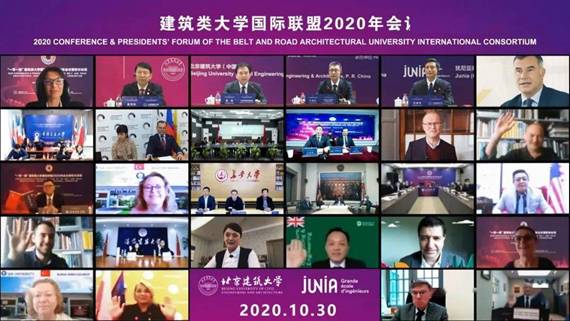 On the afternoon of October 30, 2020, the 2020 Conference & Presidents’ Forum of BRAUIC was held at Beijing University Department of Civil Engineering and Architecture. Utilizing online and offline attendance, the forum drew 47 universities from nearly 20 countries and regions. Yi Zhijian, Vice President of Chongqing Jiaotong University, heads of the International Office, College of Architecture and Urban Planning of Chongqing Jiaotong University, and representatives of teachers and students participated in the forum online.