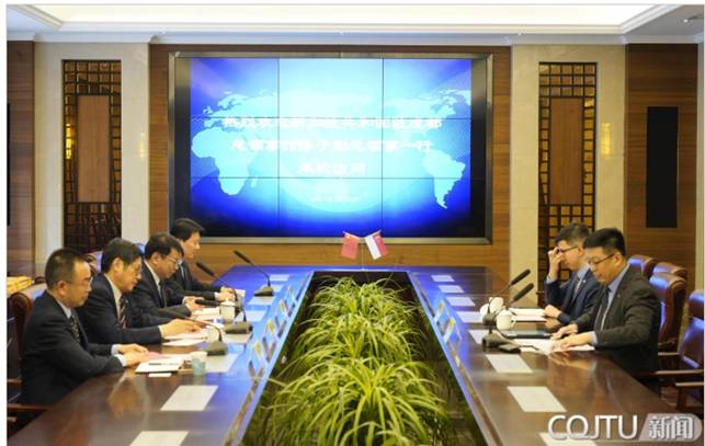 On the afternoon of March 30, 2021, Mr. Chen Ziqin, the Consul General of the Consulate General of the Republic of Singapore in Chengdu, Han Kaijie, the Consul of Government Affairs, and their delegation visited Chongqing Jiaotong University. Prof. Tang Boming, the President of the University, met with the guests at the International Conference Hall of Mingde Building in Nan'an Campus. Vice President Yi Zhijian and representatives from the International Office accompanied them.